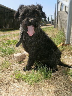 Cor e pelagem: Preto e pêlo encaracolado